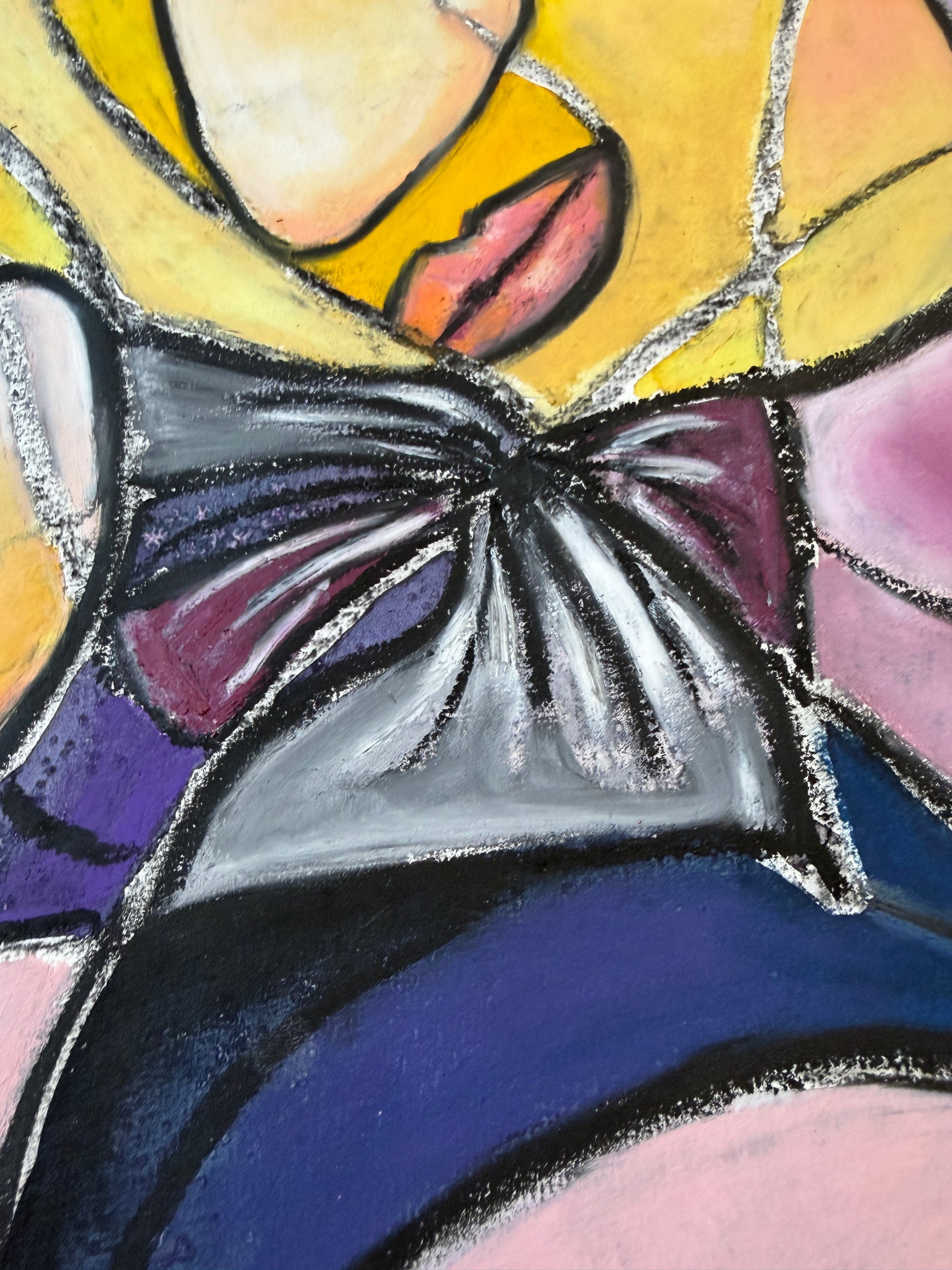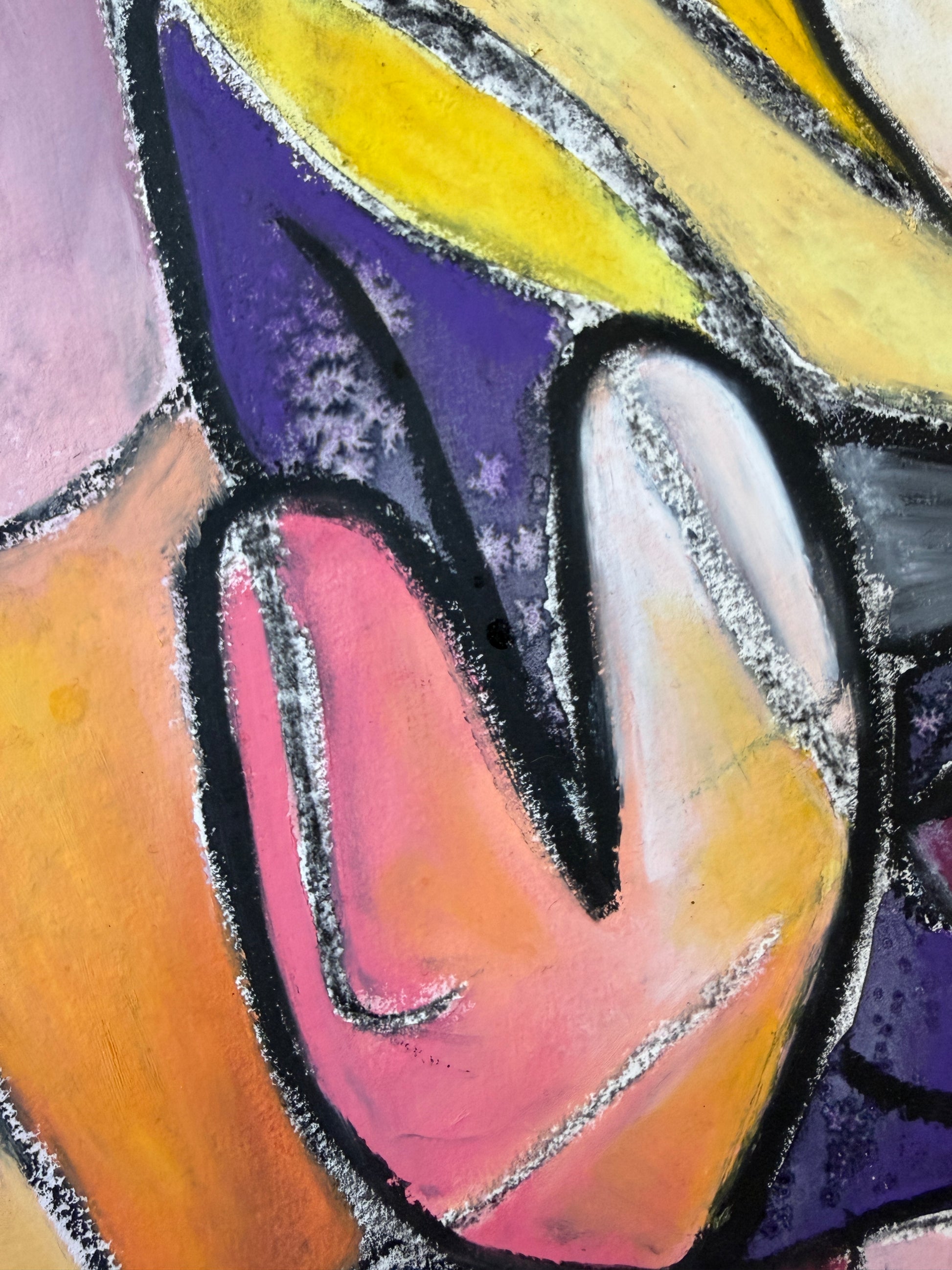 Der Hintergrund des Bildes ist aquarelliert, die Ausarbeitung mit Pastellkreide.