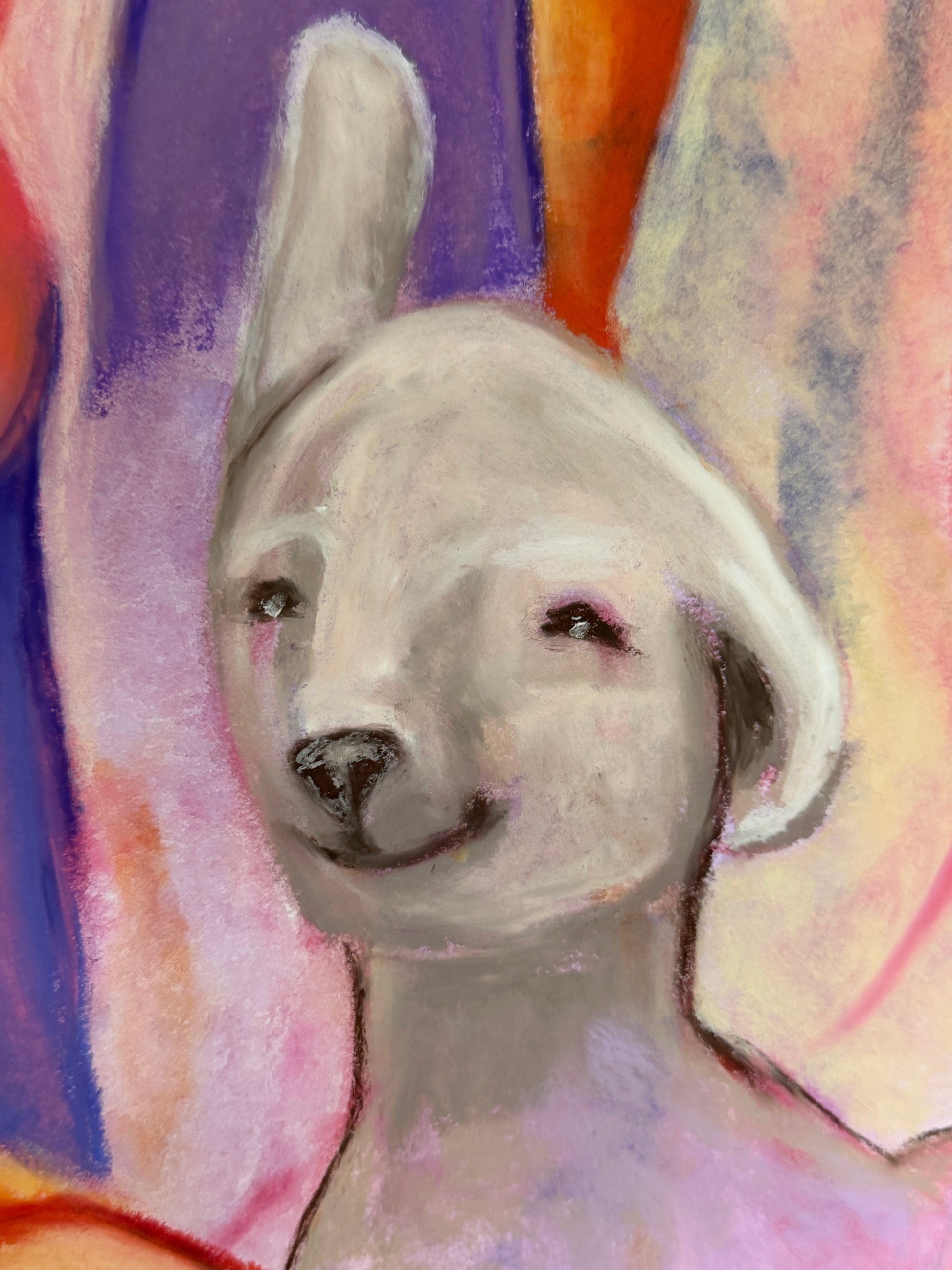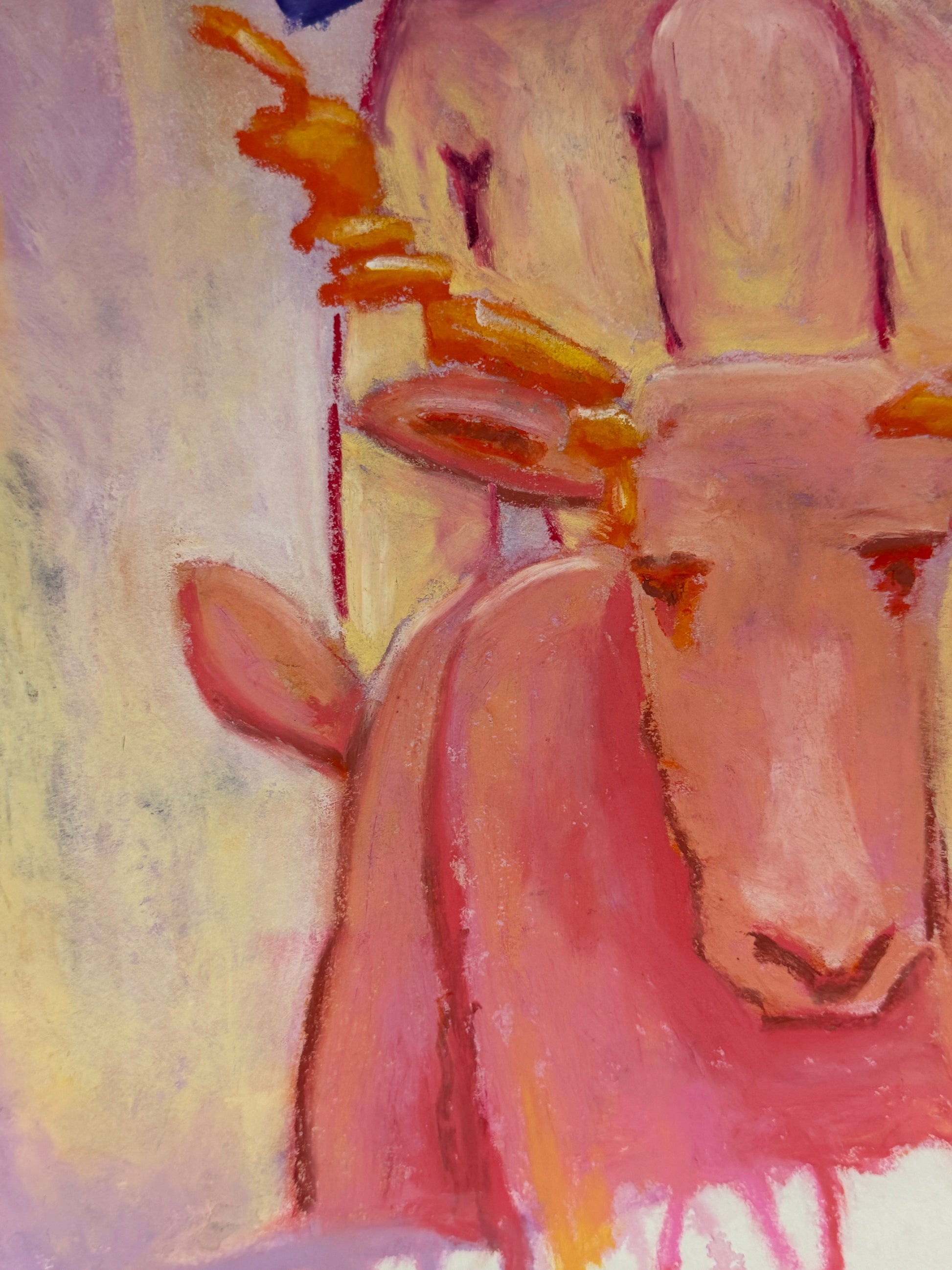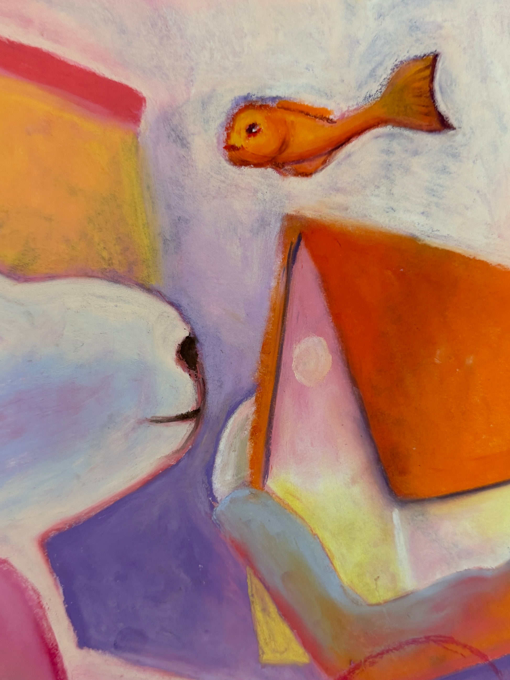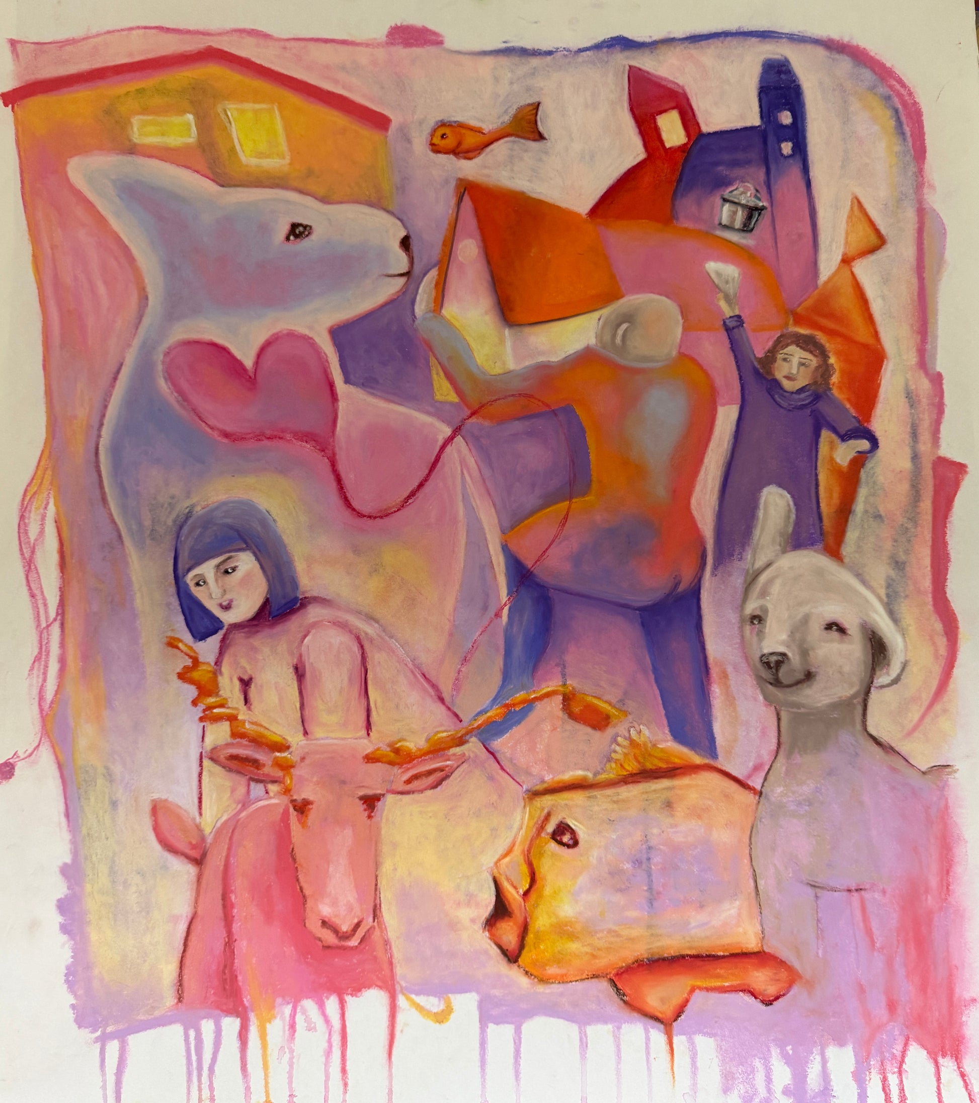 das Bild ist auf Papier mit Aquarell und Ölpastellkreide gemalt und ist 65x73 cm groß.